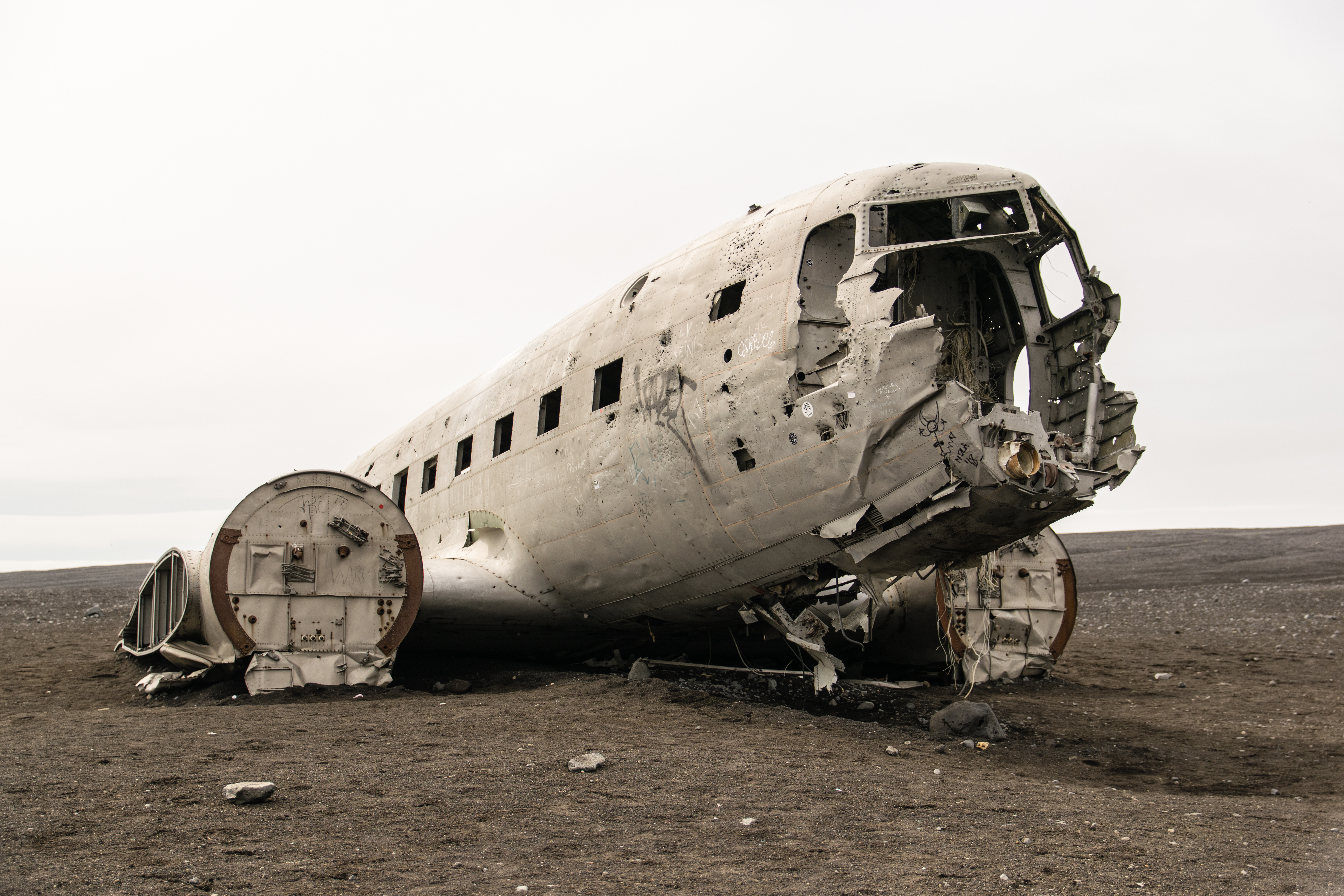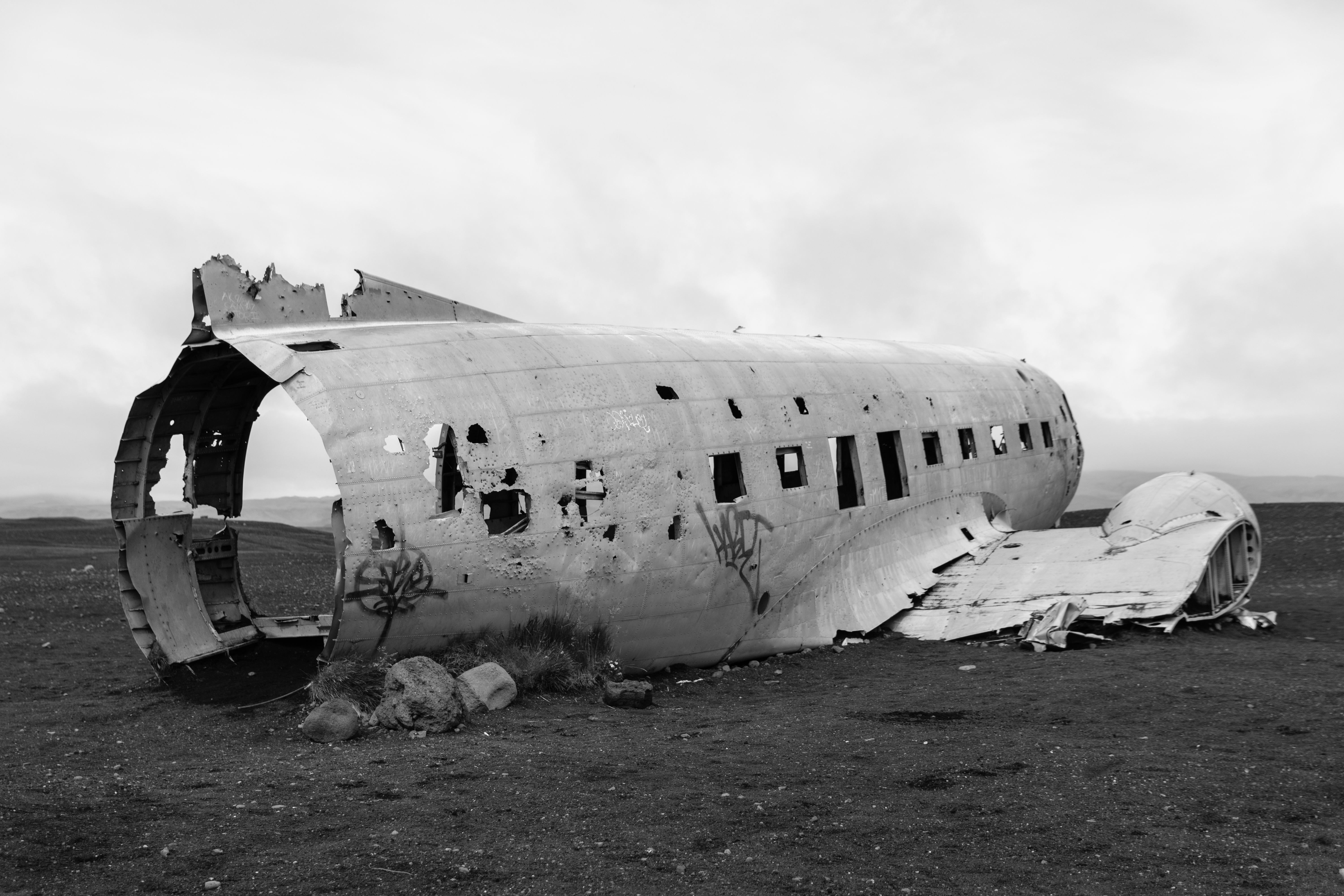 Whilst in Iceland, I visited the site of the DC3 plane wreck at Sólheimasandur. The combination of the black sand and cloudy day gave a somewhat eeire feeling to the plane. The barrenness of the area, with the plane wreckage being the only thing in sight, made for some great photography.